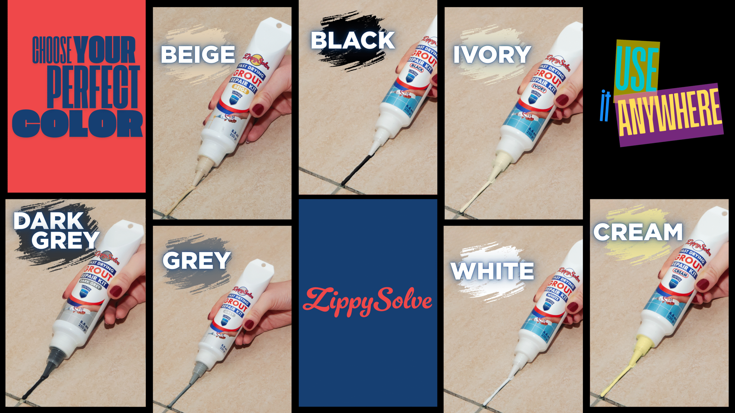 ZippySolve tile grout repair kit offers perfect compatibility with its white, gray, beige, and dark gray color options for any surface. Its waterproof formula provides long-lasting protection, while the special mold protection technology keeps your surfaces clean and safe.